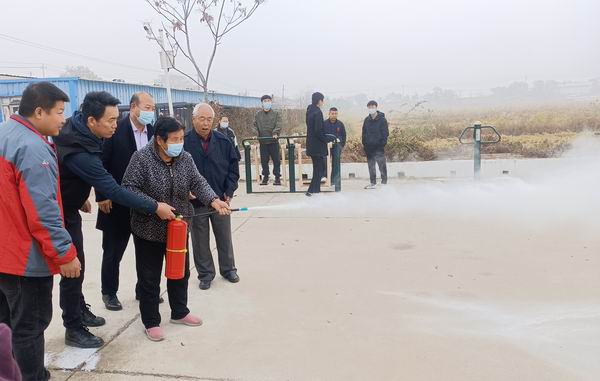 市委编办派驻操场河村的驻村第一书记韩立同志及小站镇安委会、前营等村居党员、村仓库安全员对来到小站镇进行支部共建活动的党员同志们表示了热烈的欢迎。盛达公司组织了科普宣传小分队,向村群众、村居干部进行了消防安全科普培训,并示范了灭火器、灭火毯等常见消防器材的使用,还向操场河村委会赠送了干粉灭火器、灭火毯以及消防宣传书籍和手册。