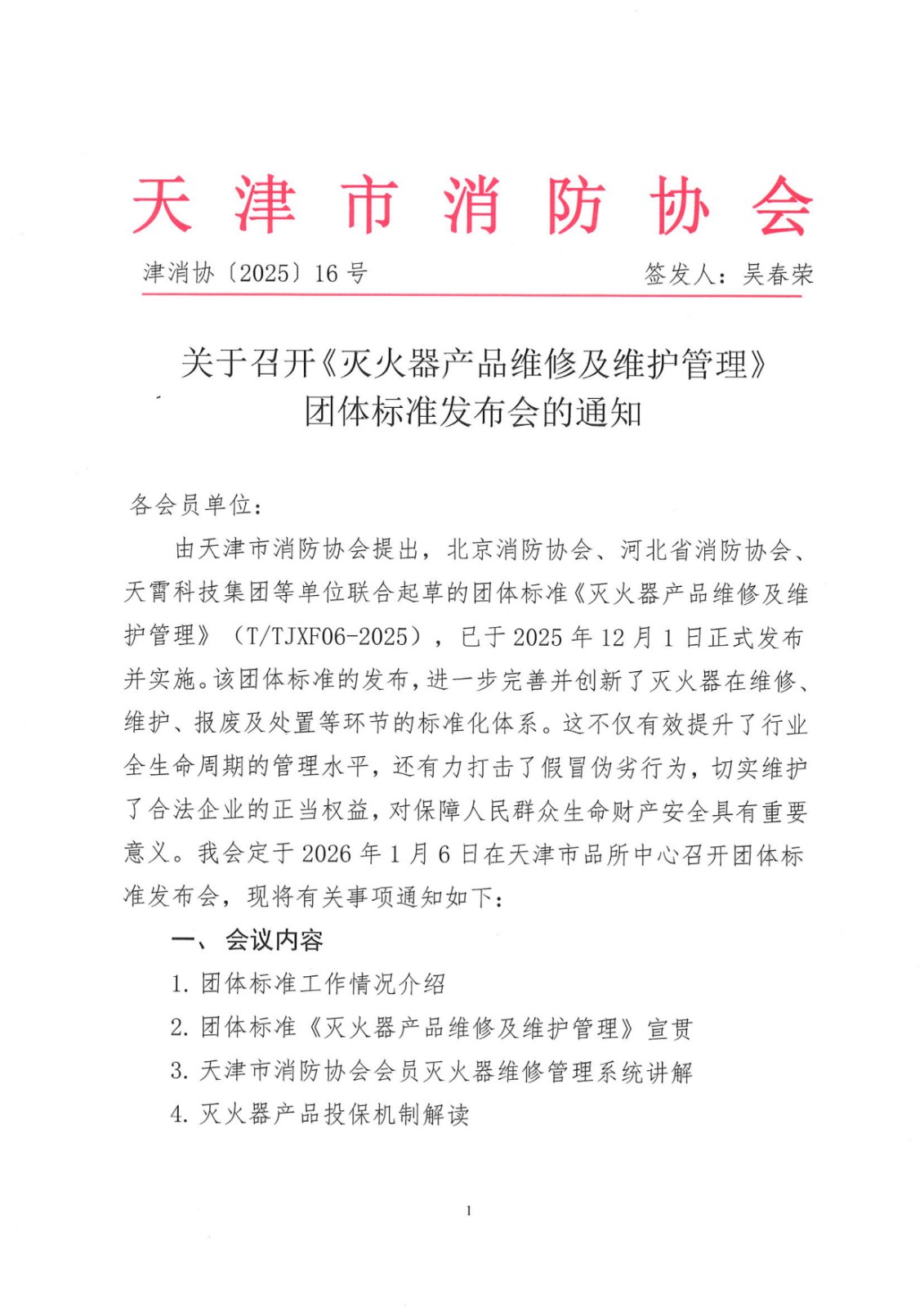 关于召开《灭火器产品维修及维护管理》团体标准发布会的通知