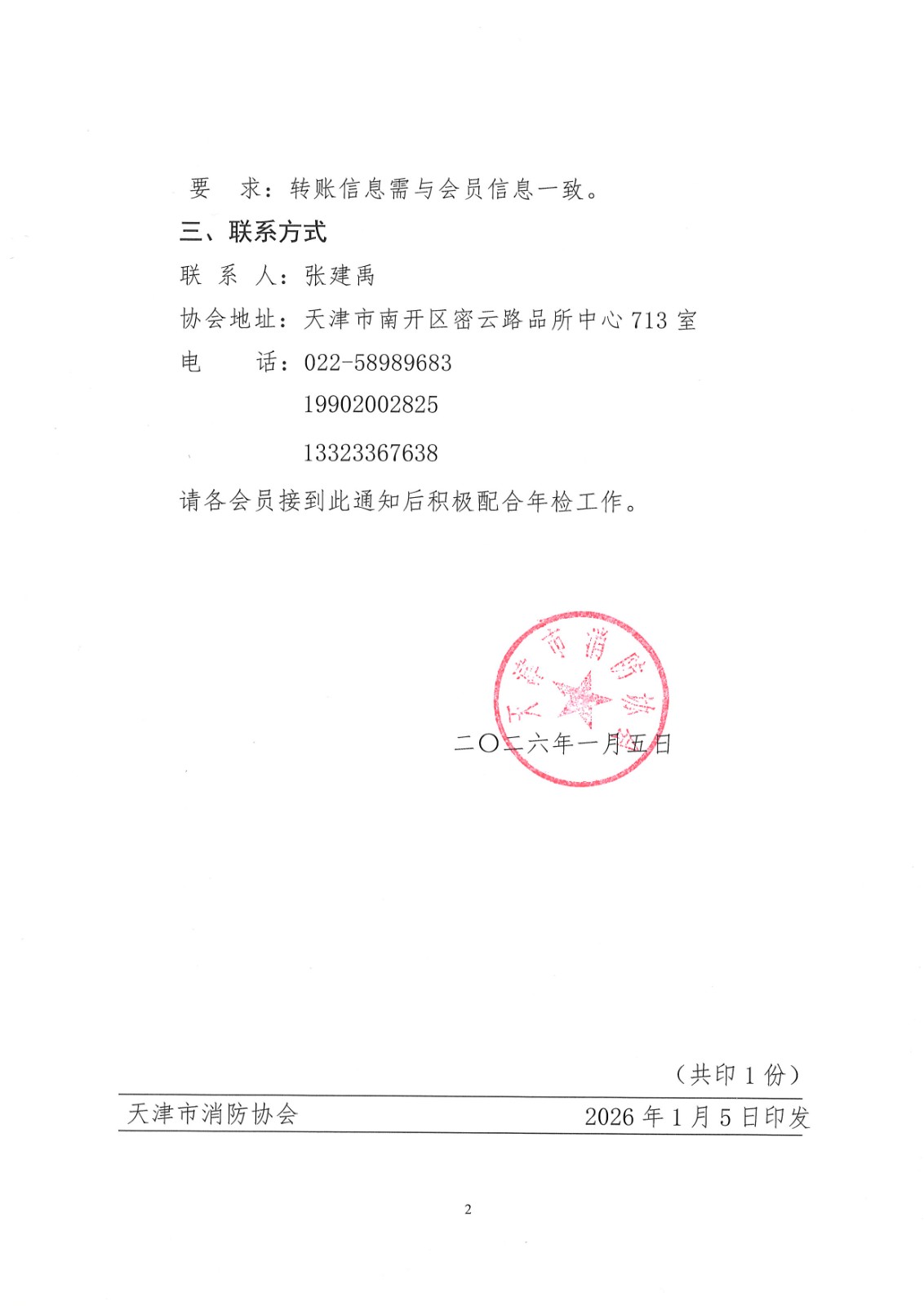 关于天津市消防协会2026年度会员年检工作的通知